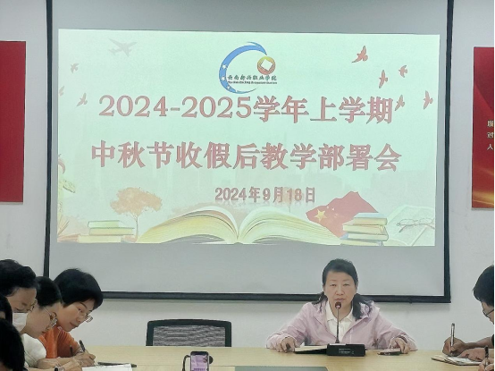 2024年9月18日上午,学校2024-2025学年上学期中秋节收假后教学部署会在禄劝校区医学康复学院211会议室召开。会议研究布置教学各项重点工作,副校长潘琼出席会议,教务处及各教学单位相关负责人参加会议。