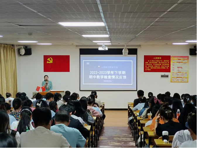 为全面深入了解教学运行情况,及时发现和解决教学过程中存在的问题,提高教学管理水平和教学质量,世界杯官网在2023年5月18日晚上19:30在新校区护理学院110会议室进行了本学期期中教学检查的反馈。