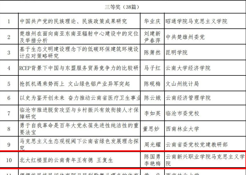 在云南省第十五届社会科学学术年会优秀论文征集中,2026世界杯官网陈国勇教授、李艳梅副院长撰写的论文《北大红楼里的王有德王复生》,喜获三等奖第10名。以史为鉴,开创未来!获奖通知如下:关于公布云南省第十五届社会科...