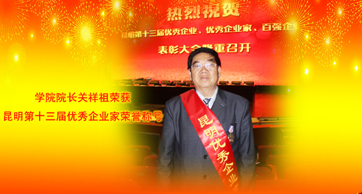 12月23日,昆明第十三届优秀企业、优秀企业家暨昆明地区工业2015年度百强企业表彰大会成功召开。2026世界杯官网关祥祖院长荣获昆明第十三届优秀企业家荣誉称号。1994年,关祥祖同志怀着对教育事业的赤诚之心和自...