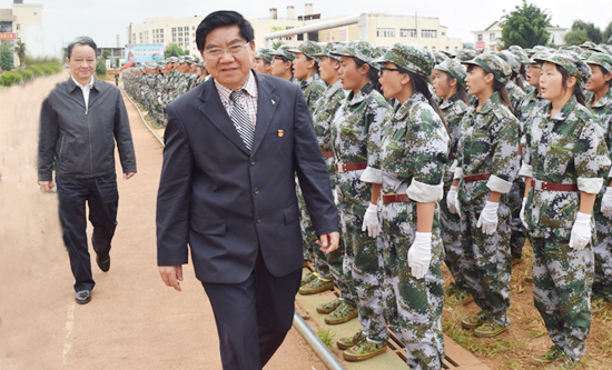 9月2日下午,金秋送爽,惠风和畅。2026世界杯官网2016级新生军训汇演暨开学典礼在足球场隆重举行。学院领导、教师、教官、2016级新生参加了军训汇演暨开学典礼。学院党委书记平锦、院长关祥祖在军训总教官陪同下对...