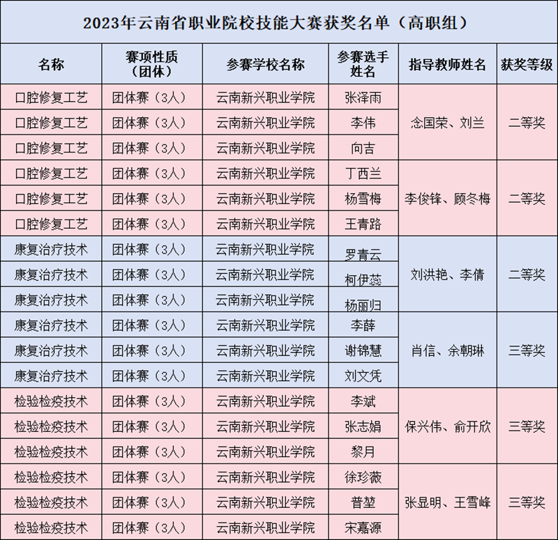 2023年9月25日—30日,由云南省教育厅主办的2023年云南省职业院校技能大赛如期举行,世界杯官网口腔修复工艺赛项、康复治疗技术赛项、检验检疫技术赛项共6支参赛队伍,经过激烈角逐在此次大赛中荣获佳绩。获奖情况如下...