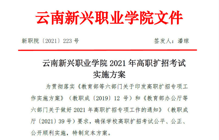 为贯彻落实《教育部等六部门关于印发高职扩招专项工作实施方案的通知》(教职成〔2019〕12号)和《教育部办公厅等六部门关于做好2021年高职扩招专项工作的通知》(教职成厅〔2021〕39号)要求,做好应(往)届...