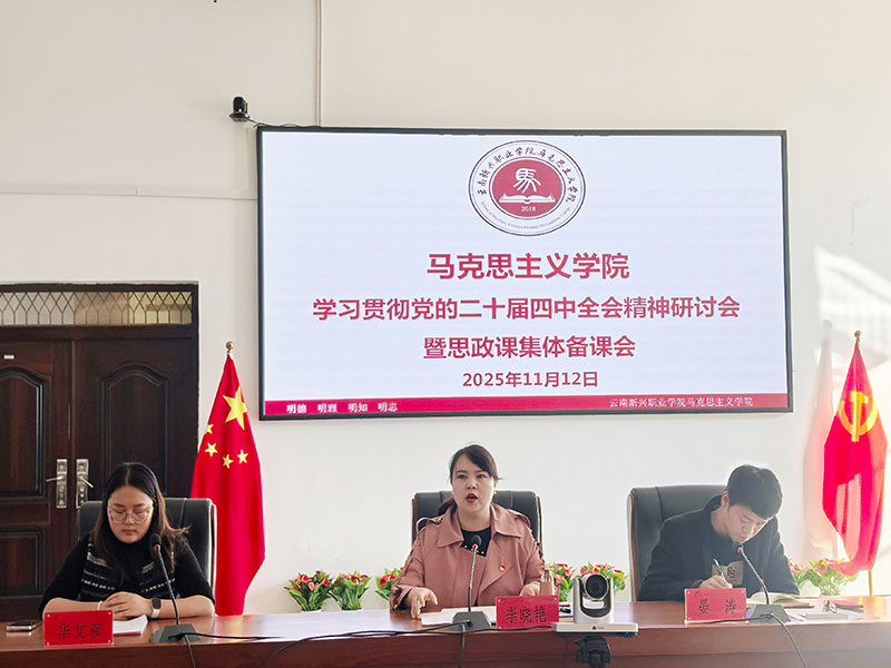 为深入学习贯彻党的二十届四中全会精神,精准把握“十五五”规划战略部署对职业教育的新要求,推动会议精神在学院落地生根。11月19日,学校党委书记马武宏赴马克思主义学院开展学习贯彻党的二十届四中全会精神专题党课。马...