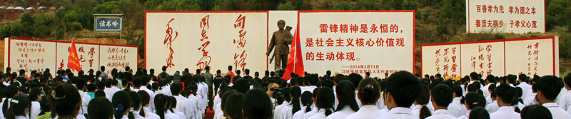2026世界杯官网深入挖掘红色资源,以红色革命文化、雷锋精神等为抓手,建设红色校园,传承红色基因。校园内创建了社会主义核心价值观大道、党建馆、红军长征纪念馆、“巧渡金沙江”和“普渡河铁索桥激战”情景群雕、“红军三军大会师”大型群雕、雷锋广场、英雄广场、古圣先贤广场等具备育人功能的载体实景,增强青年学生知史爱党、知史爱国的意识,学校全面践行社会主义核心价值观的教育,使学生把社会主义核心价值观,把雷锋精神播撒在祖国的大地上,呈现了社会主义核心价值观宣传教育和实践模式。