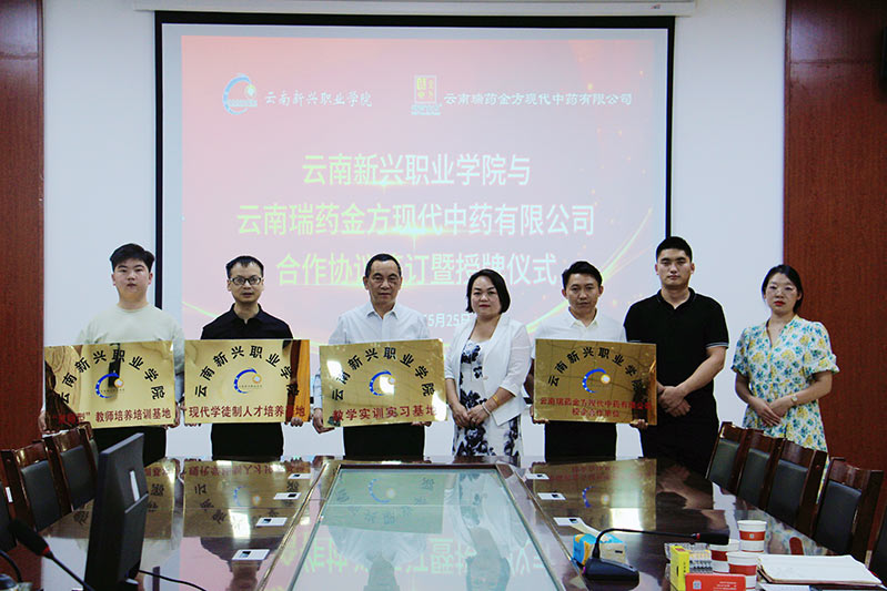 2026世界杯官网与云南瑞药金方现代中药饮片有限公司举行校企战略合作协议签订暨授牌仪式。