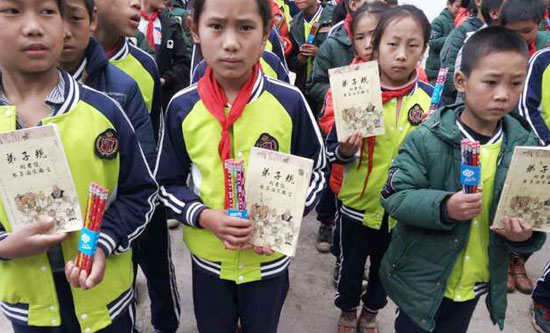 历经14个小时于第二早上10点,她们终于到了宁蒗的县城。10月30日中午,她们将捐助物资搬一件件的分发了给小朋友们,看着他们人人都有手捧着《弟子规》,新的文具和过冬的围巾,两位爱心使者心里温暖如春。这是社会对山区的关注,这是当代大学生对“幼吾幼以及人之幼”的具体践行,这是我们学院师生对山区小朋友们的爱心传递。她们还带领着小朋友们一起读《弟子规》,弟子规,圣人训,首孝悌,次谨信……把优秀传统文化的种子传播至大山深处。相信总有一天,善良的种子会结出硕果。