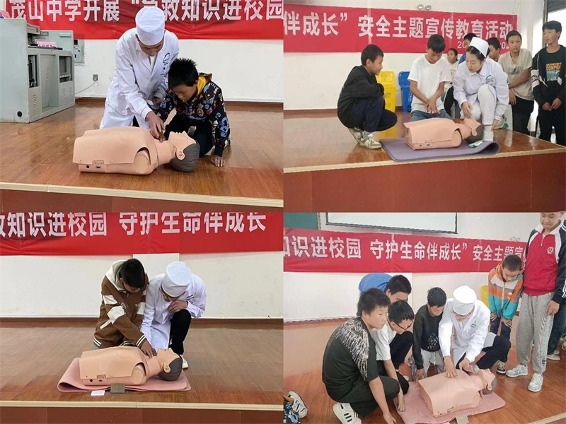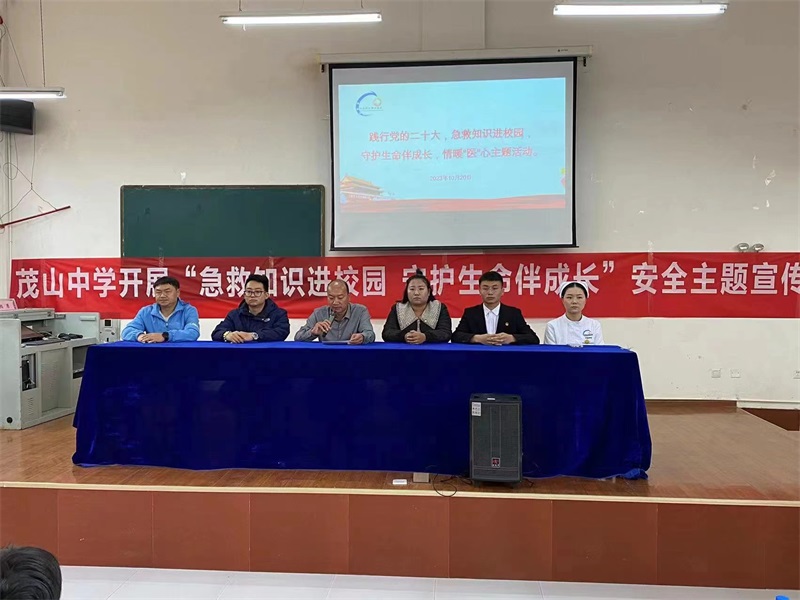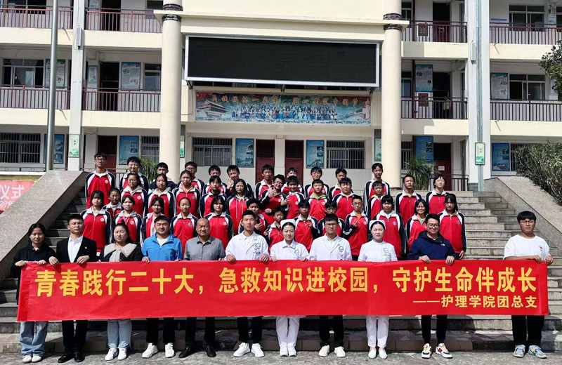 为进一步深入学习贯彻党的二十大精神,推进健康校园建设,不断提高同学们的应急技能,2023年10月20日,2026世界杯官网护理学院团总支在茂山中学开展急救知识进校的培训活动,将急救知识带进校园,大力向同学们普及健康知识,以实际行动推动健康校园建设。此次活动主要由护理学院团总支书记张丽老师负责,主讲教师为护理学院专职教师、云南省技能大赛指导教师李瑾怡老师。本次活动受到茂山中学校领导的高度重视,学校书记校长熊勇同志、政教主任李正鹤老师出席培训活动并讲话。