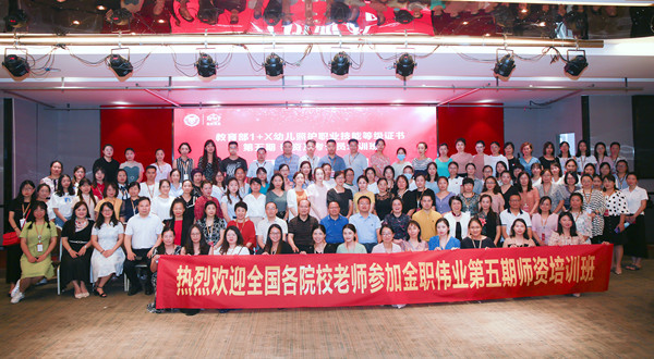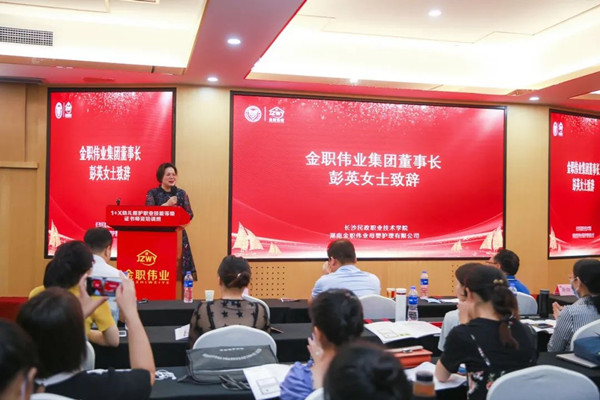 金职伟业集团董事长彭英在讲话中提到:“金职伟业作为一家年轻但有力量的企业,拥有一支专业、高效的团队,在之后我们还需要不断地沉淀、创新。在今后,金职伟业将借助1+x平台、利用这个绝佳契机,不留余力地完善和创新幼儿照护领域的标准、课程、服务、教材体系,并积极落地‘1+x’幼儿照护课程实训基地的建设,协助各大院校逐步推进‘1+x’证书制度试点工作,多措并举促进‘书证融通’,全面深化教师、教材、教法‘三教’改革,不断探索幼儿护照职业技能等级证书落地各大职业院校、应用型本科高校的方法模式。”