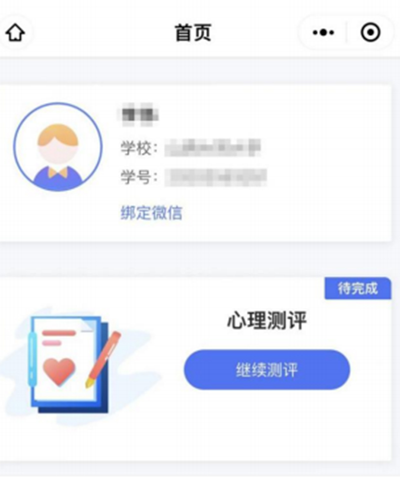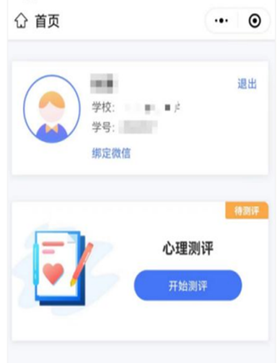 登录后可看到个人信息和心理测评两个模块。点击“绑定微信”,下次即可一键登录,无需再进行手机号验证码操作。如下图: