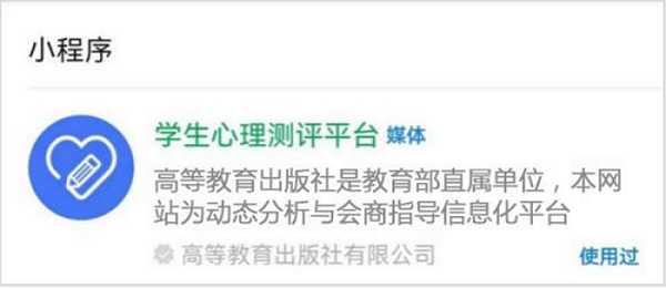 打开微信,搜索小程序“学生心理测评平台”点击进入,如下图: