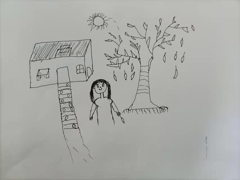 讲座开始,施老师要同学们拿出笔,在准备的白纸上画:房子、树、人。怎样画都可以,画画的顺序、方式等都没有任何限制。唯一的要求是一定要认真画。作画的时间要在15分钟以内。