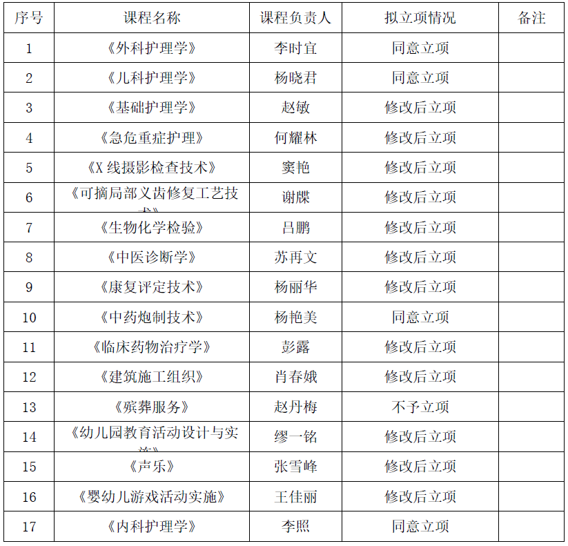 一、本年度共有17门课程符合申报条件并进入评审环节。经综合评定,拟确定《外科护理学》等16门课程为校级在线精品课程立项建设项目(详见附件《2026世界杯官网校级在线精品课程立项建设评审结果公示一览表》)。