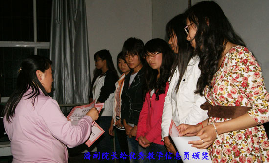 阮金华副处长对新学期信息员工作进行了具体布置。最后,学院领导表彰2011-2012学年度优秀学生教学信息员并颁发了 荣誉证书。此次会议取得了圆满的成功。