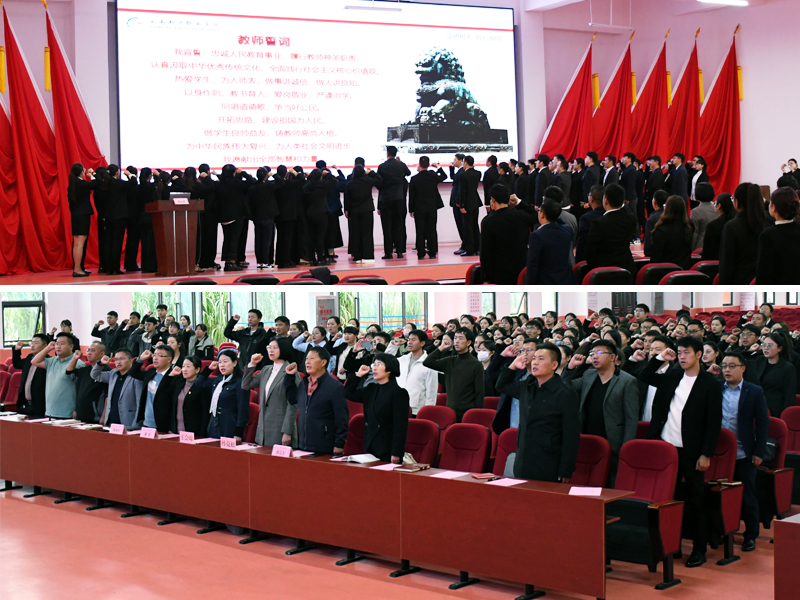 会议围绕着以下四个方面进行,一是全体教师宣誓,二是学校潘琼副校长做教学要求,三是质管与科研处李彦升处长对创新团队建设工作推进安排,四是教务处张如银处长对近五周教学巡查情况进行通报。