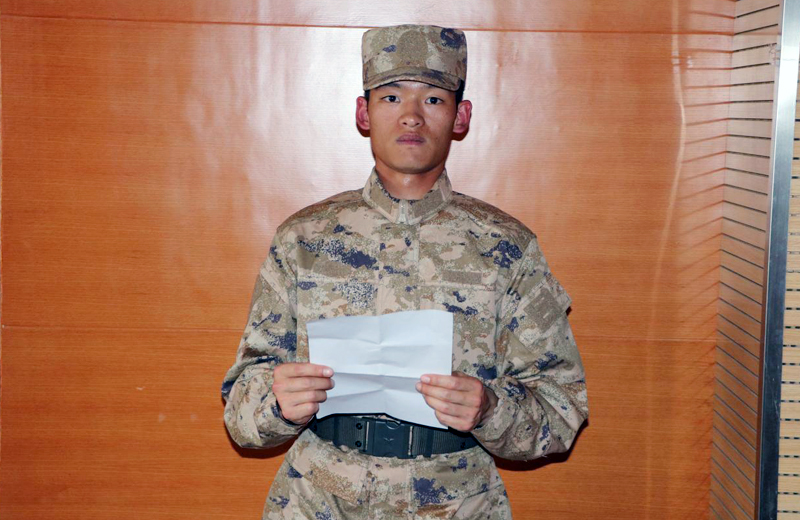 入伍新兵金利荣代表发言,他首先感谢了父母的养育之恩,是父母的言传身教让他懂得做人的道理。其次感谢了学校的培养,学校不仅传授他知识,更教会他做人和担当。学校的党建馆、红军长征纪念馆仿佛一本生动的党史活教材,每一次参观,看到里面震撼人心的文字和画面,心灵都会受到强烈的震撼,更加坚定他应征入伍的决心。最后,他表示,奔赴军营后,会以革命先辈为榜样,发扬“流血流汗不流泪,掉皮掉肉不掉队”的作风,以饱满的热情和昂扬的斗志,为祖国的国防事业贡献自己的一份力量。