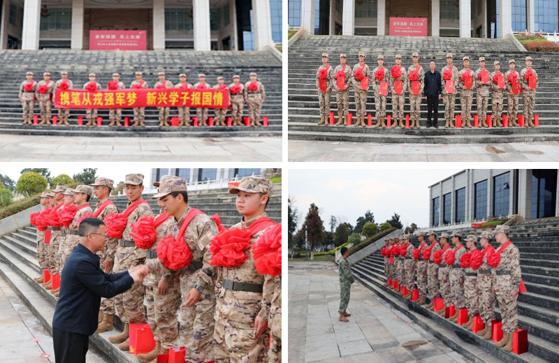 党委委员、常务副校长李地新寄语入伍新兵:当代中国青年生逢其时,施展才干的舞台无比广阔。希望他们在火热军营中淬炼成钢,让青春在全面社会主义现代化建设国家的火热实践中绽放光芒。一是要有钢铁一般的信仰、信念和担当。二是要把学校学习践行“社会义核心价值观”“雷锋精神”“长征精神”和“中华优秀传统文化”的传统带到军营,创佳绩立新功。三是希望入伍新兵牢记使命,坚定信念,在军队中刻苦训练、提升本领,为国防事业贡献力量。