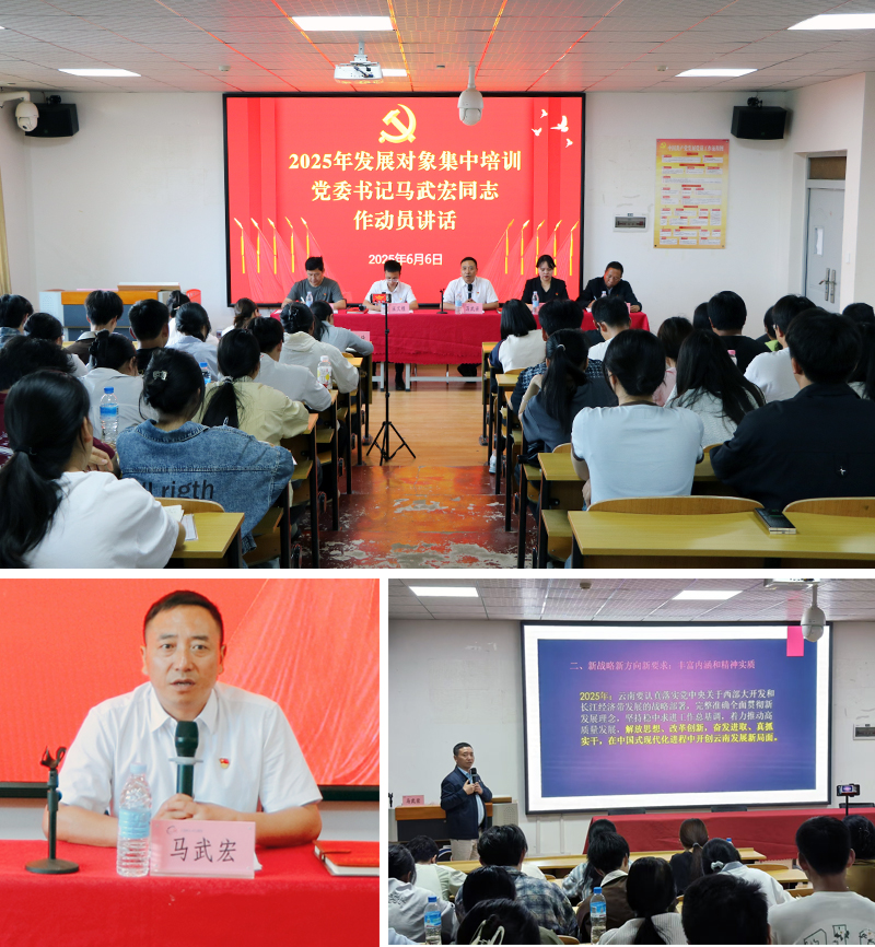 党委党校2025年上半年党员发展对象集中培训的顺利开展,是学校党委深入贯彻落实党的二十大精神、党的二十届三中全会精神、习近平总书记考察云南重要讲话精神,深化新时代党员队伍建设的重要举措,为学校党员发展工作注入了新动能。学员们纷纷表示,今后将以更高的标准要求自己,不断提高自身素质,坚定不移听党话、跟党走,争取早日成为一名光荣的共产党员,为推进强国建设、民族复兴伟业贡献青春力量。