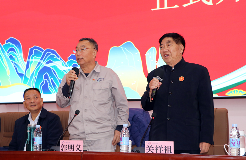 2024年11月8日,邀请郭明义、李克等到优秀人士到校给师生做讲座。下图为郭明义与学校董事长关祥祖合影