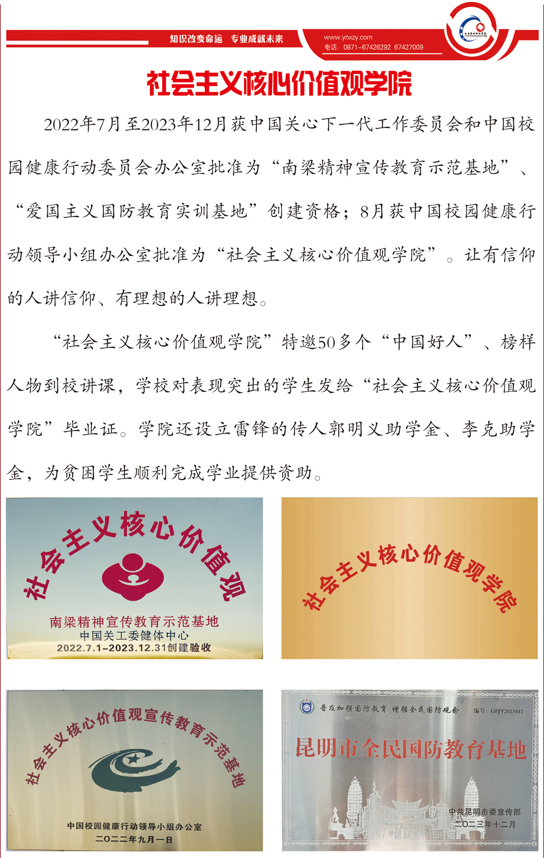 2023年6月荣获”社会主义核心价值观宣传教育示范基地“