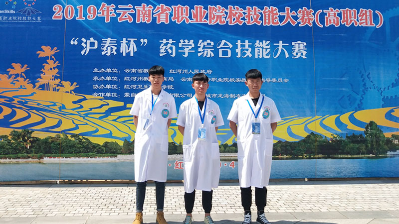 2019年4月9日——12日,2019年云南省职业院校“沪泰杯”药学综合技能大赛在红河卫生职业学院隆重举行。本次大赛共有13家高职院校共计37名选手参赛,经过药物分析、药物制剂配制、中药性状鉴别和实践理论考核4个项目的激烈角逐,药学院2015级五年制药物制剂技术二班学生许玉林荣获一等奖、2015级五年制药物制剂技术二班学生和丽华荣获二等奖、2015级五年制药物制剂技术二班学生王利超荣获二等奖。