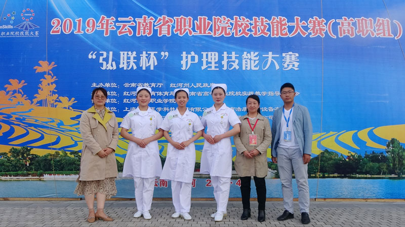 由云南省教育厅、红河州人民政府主办,红河州教育体育局、云南省高等职业院校实践教学指导委员会承办的2019年云南省职业院校技能大赛于4月正式拉开序幕。为更好的促进学院护理、药学和中药学专业的发展,提高教师的教育教学水平,增强学生的实验实训动手能力。在学院领导的高度重视、关心和正确领导下,护理学院、药学院师生充分备赛,认真参赛,并在2019年云南省职业院校技能大赛斩获佳绩。