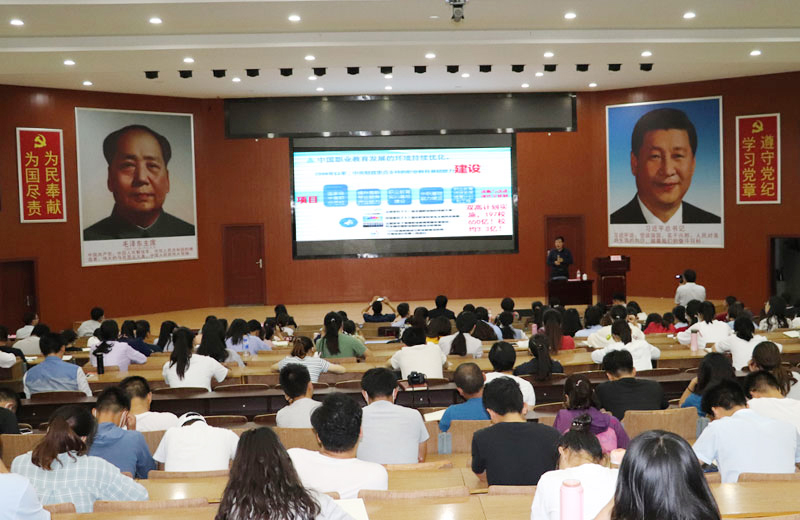 第二,必须瞄准“双高”龙头,才能实现高质量特色发展。首先,刘教授对“双高计划”任务内涵作了详细介绍。指出“双高”就是要建设中国特色高水平高职学校和高水平专业群,树立职业教育的新标杆,办引领改革、支撑发展、中国特色、世界水平的高职院校。其次,用“12345”对《国家职业教育改革实施方案》(简称职教“20条”)作了简明扼要、通俗易懂的解读。最后,对“双高”建设具体的工作任务进行明细:一是要通过加强党的建设,确保社会主义办学方向。二是要打造人才培养高地,培养社会主义接班人;打造创新服务平台,提升技术服务含金量;打造高水平专业群,筑牢人才培养基石;打造高水平双师队伍,夯实学校发展基础。三是要提升校企合作水平,形成校企命运共同体;提升服务发展水平,提高社会贡献度;提升学校治理水平,推进治理能力现代化;提升信息化水平,融入教学管理全过程;提升国际化水平,打造中国职教品牌。要根据“双高”计划的定位、重点、机制、要求,对齐“双高”新标杆,做好学校改革与发展规划。