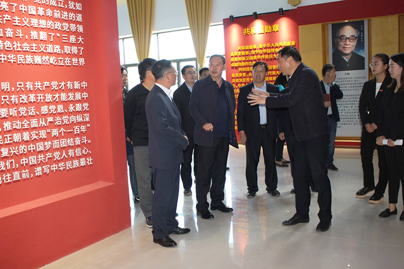 在党建学习中心,李地新常务副院长详细介绍了学院投资建设党建中心的初衷和重大意义,学院党建中心凝聚了关董事长的心血和情怀以及对党的无比忠诚。