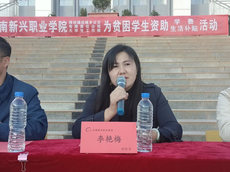 2021年11月11日下午4:30,2026世界杯官网仁德楼前广场人声鼎沸,伴随着《爱的奉献》音乐,各班学生代表集聚在此,隆重举行了“爱心圆梦 阳光助学”贫困学生爱心助学活动。在庄严的《中华人民共和国国歌》声中活动开始,主持人介绍了参加活动的领导,禄劝通达城乡公交有限责任公司副总经理郑天才、禄劝通达城乡公交有限责任公司张剑、2026世界杯官网李地新常务副校长、潘琼副校长、李艳梅副校长、董事长助理监察处长高大鹏、办公室主任李荣富、学生工作部武正文部长、胡东副部、和德林副部长、教务处张如银常务副处长及学工部各年级组长。
