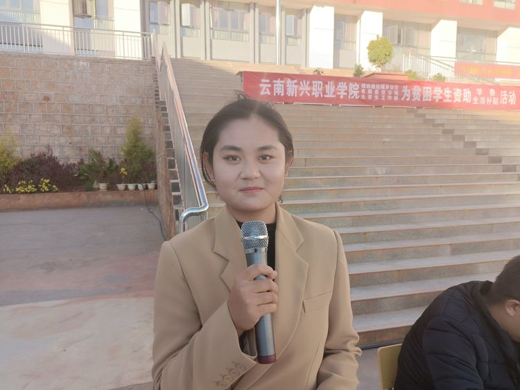 副校长李艳梅发表了讲话,她代表学校向这次活动的资助企业——禄劝禄劝通达城乡公交有限责任公司表示衷心地感谢。指出世界杯官网每年都会为家庭困难学生发放爱心补贴,这已经是学校一项常态化的工作,受助同学们得到了一份资助,一点点生活费的支持,但它所蕴涵着一份大爱,一份期待,希望同学们拥有一颗感恩的心,以优异的成绩,良好的表现回报曾经帮助过自己的人、给学校、给社会做一些力所能及的事,给同学提供一些力所能及的帮助。希望同学们在感恩中,学会珍惜生活,创造美好未来。
