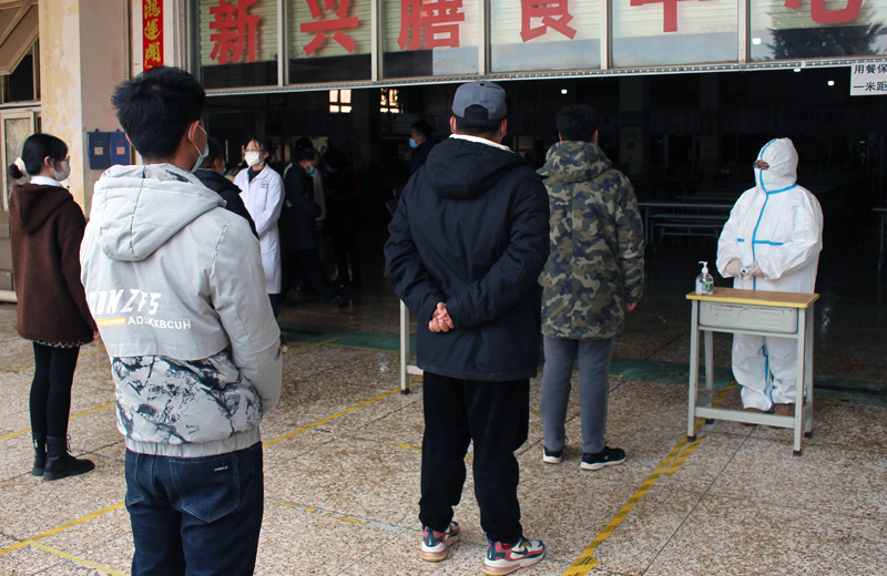 疫情防控领导小组再三交待食堂工作人员按要求进行工作