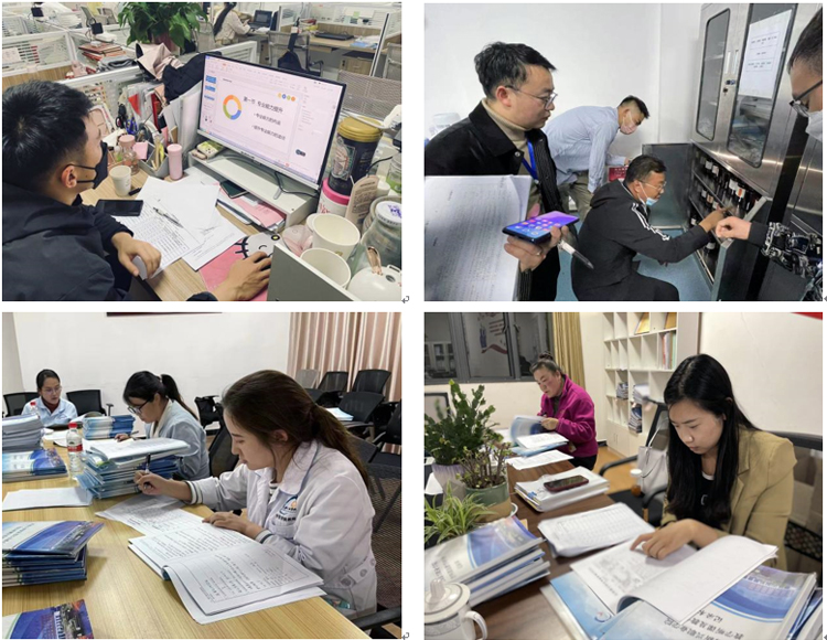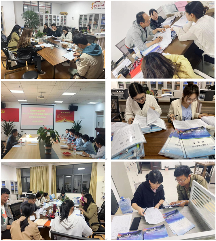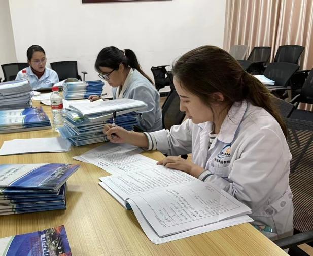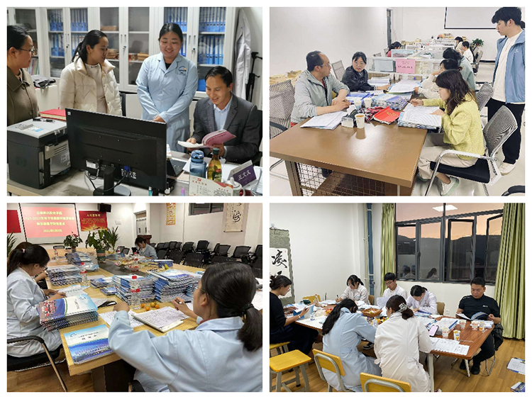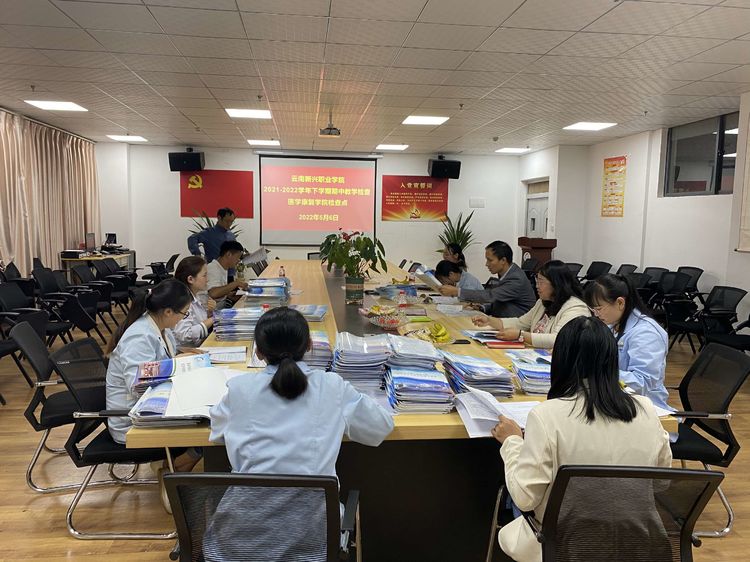 会后,在各组组长带领下,参加检查人员立即奔赴护理学院、药学院、医学康复学院、教务处等检查现场进行了严格细致的检查。本次期中教学检查的内容共有十二项:一是课堂教学质量检查。检查各二级教学单位的听评课记录,在每次听评课时,《云南新兴职业学校课堂教学质量评价表》完成情况,检查学生到课率,检查任课教师考勤记录以及根据学校教学日历,检查教学进度等;二是教学规范性文件检查。检查教师教案、教学大纲、实训指导、实训报告、多媒体课件等规范性文件的编写和制作情况;三是教研室工作手册。各教研室教研教改、教研室工作计划等开展情况检查;四是教师论文发表情况;五是教学管理情况。各二级教学单位教学计划、常规教学管理开展情况、师生反映的问题整改和落实情况;六是期中考核完成情况;七是实验实训情况。各二级教学单位实验实训室使用情况、实验实训课堂开展情况、实验实训器材、耗材使用登记情况、实验实训设备管理维护情况。检查实验实训仪器设备管理制度执行情况、仪器设备台账情况等;八是资料归档工作。教学文件、会议记录、技能大赛等相关活动资料整理归档情况;九是校本教材建设情况。参与教材建设的主编、副主编、编委情况,校本实验实训指导、习题集等情况;十是教学信息化平台使用情况;十一是本学期教学任务与人才培养方案是否相符等情况;十二是教学诊断与改进推进情况、科研项目及骨干教师履职推进情况。