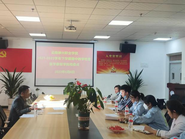 检查开始前,在新校区仁德楼402会议室召开了2021-2022学年下学期期中教学检查工作安排部署会,学校领导、教务处、各二级学院领导、教研室主任、相关处室领导参加会议。