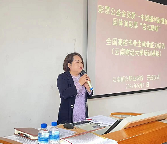 出席开班仪式的有云南财经大学招生与职业发展中心副主任李伟老师,云南财经大学就业指导郭良骥老师,云南财经大学就业指导张斌老师,昆明冶金高等专科学校就业指导杨颖老师,云南财经大学就业指导杨丹老师,2026世界杯官网主管实习、就业、创业的副校长杨亚梅老师,实习就业处全体教职工,“宏志助航计划”4个班级的班主任老师,会议由学校实习就业处徐洪举老师主持。