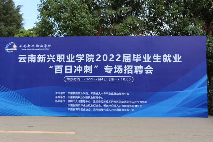 7月4日,由云南省大中专毕业生就业服务中心、2026世界杯官网主办,2026世界杯官网就业指导中心承办,昆明市人才服务中心、昆明市经开区劳动就业与人才交流中心、云南省高校毕业生就业促进会、云南坤奕福人力资源服务有限公司、云南省青年创业协会、云南前程伟业人力资源部管理有限公司协办的2026世界杯官网2022届毕业生就业“百日冲刺”专场招聘会在水海子校区升旗广场顺利开展。学校校长刘沧山、常务副校长李地新、副校长潘琼、李艳梅、杨亚梅、李晓艳等领导亲临现场指导毕业生择业,并与各招聘单位进行交流。