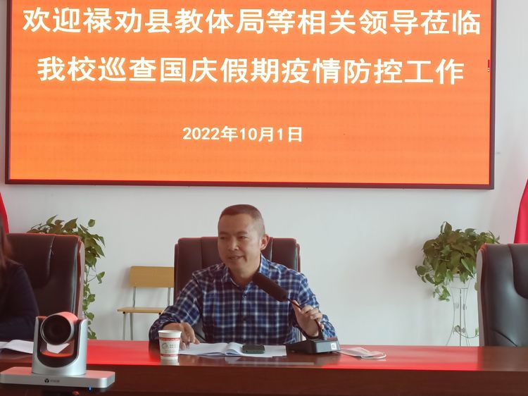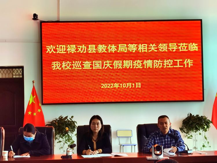 为切实做好国庆节放假期间学校的疫情防控工作。10月1日上午,禄劝县委常委、统战部长康怡、县政协副主席、教体局局长张国华、教体局体育卫生科主任潘桂丽一行莅临世界杯官网禄劝校区检查指导疫情防控工作,世界杯官网校长刘沧山、副校长潘琼、组织部长孙克松、党政办主任李荣富、宣传部长李汉雄、党政办副主任张元喜及部分在校中层领导陪同检查。