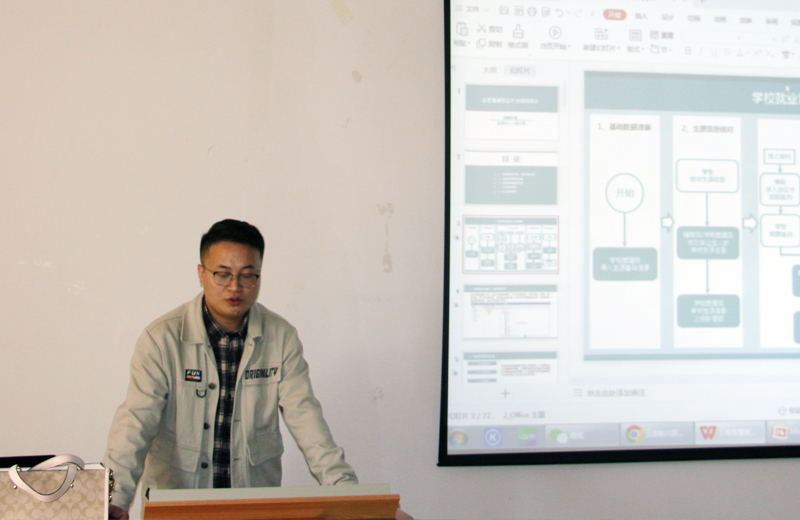 培训会开始,由云南省教育厅智慧就业平台边仁亮老师对智慧就业平台进行讲解,从学校端口到二级学院到辅导员绑定再到学生如何操作签约与解约等依次进行了培训。