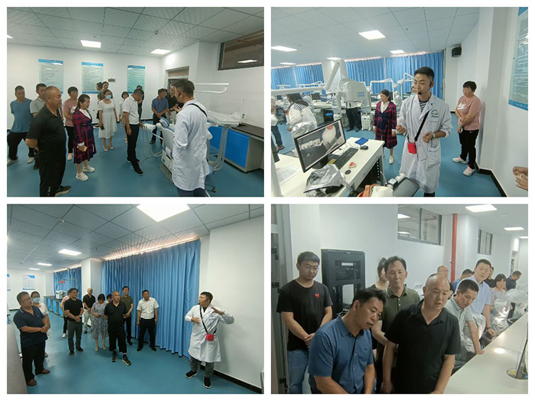 在医学康复学院,实训中心负责人带领大家对医学康复学院实训基地进行了实地参观,特别了解了口腔医学设备的操作技能。