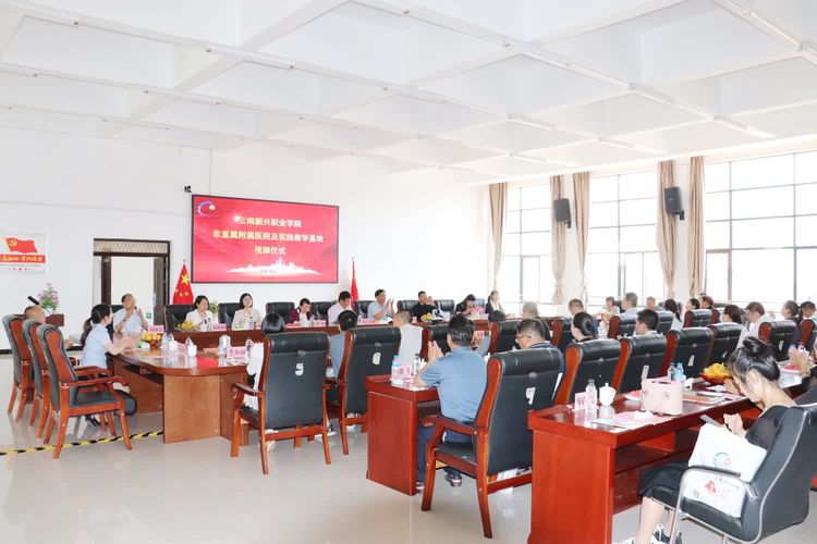 潘琼副校长总结时指出,职业教育发展到今天不只是职业院校自己的事,直接关乎到各企事业单位选人用人的大事,学校举行的非直属附属医院及实践教学基地授牌仪式是在专业申报的基础上,进一步深化产教融合,推进现代学徒制人才培养,推动学校高质量发展的重要举措,希望各合作企业在今后的发展中能够一日既往的关心和支持学校发展,与学校构建命运共同体,同呼吸、共命运,同心同德,共促发展,助力云南省职业教育的高质量发展和学校的跨越式发展。