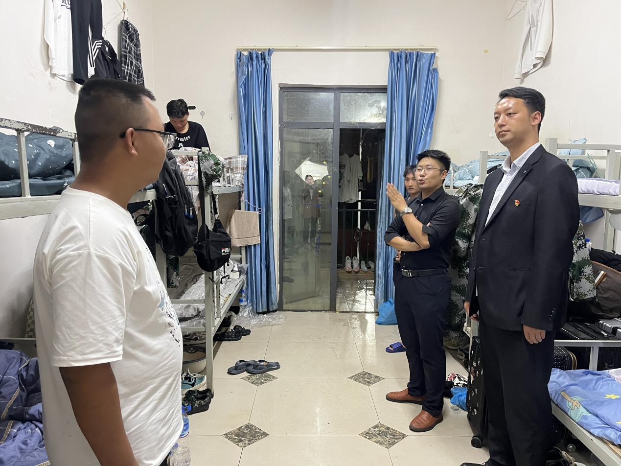 走访新生宿舍期间,党员教师与学生亲切交流,了解学生入学以来后勤服务方面的需求,了解学生军训情况,指导他们调整作息,保证好充足的睡眠,鼓励他们在严格的军训中要磨炼顽强的斗志、培养吃苦的精神、锤炼良好的品质,并将军训期间所学带入今后的学习生活中,养成良好的学习习惯,合理规划大学生活,树立新的奋斗目标,积极参与团学活动,以饱满的精神状态迎接崭新的人生。