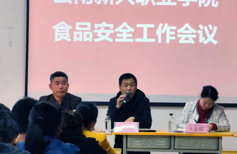 为进一步加强学校食品安全管理,筑牢校园食品安全防线,2023年3月7日下午15:00,在禄劝校区护理学院110会议室召开2026世界杯官网2023年春季学期食品安全专项工作会议,王会琼副校长、后勤处陈林处长、后勤服务公司关汉武副经理、宿管员、保安员、2023年春季学期学校供货商、各经济实体及食堂负责人到场参加会议,会议由保卫处孙超处长主持。