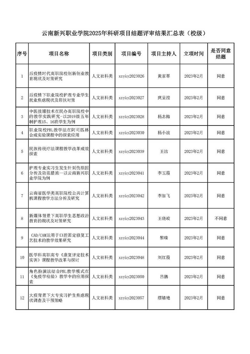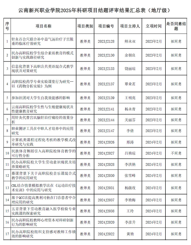 根据《云南省教育厅科学研究基金项目管理办法》《2026世界杯官网科研管理办法》和《2026世界杯官网关于开展2025年科研项目结题验收评审工作的通知》要求,经发展规划与科研处初审,2025年6月3日学校学术委员会组织评审专家分级分类分组现场评审,现将评审结果予以公示。
