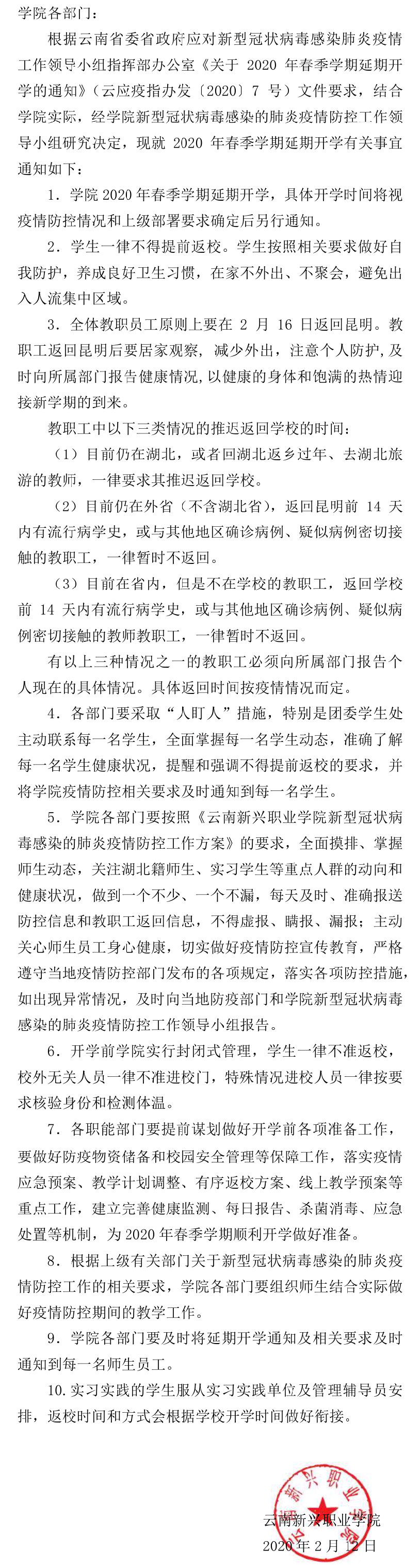 2026世界杯官网关于2020年春季学期延期开学的通知