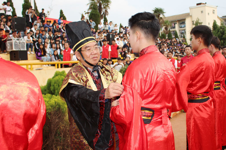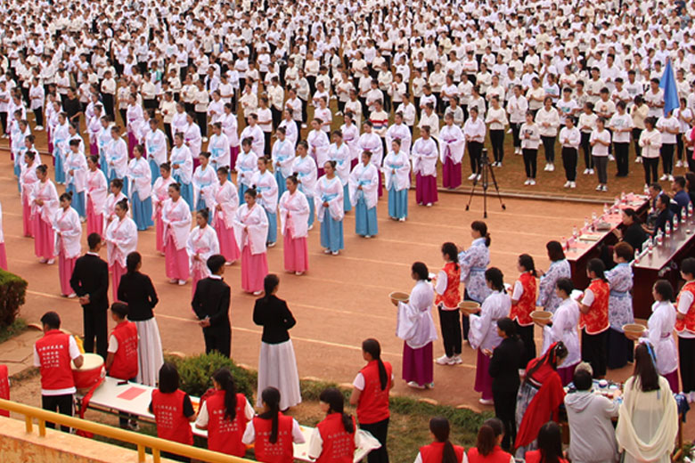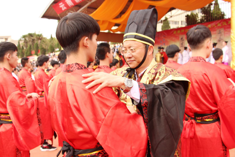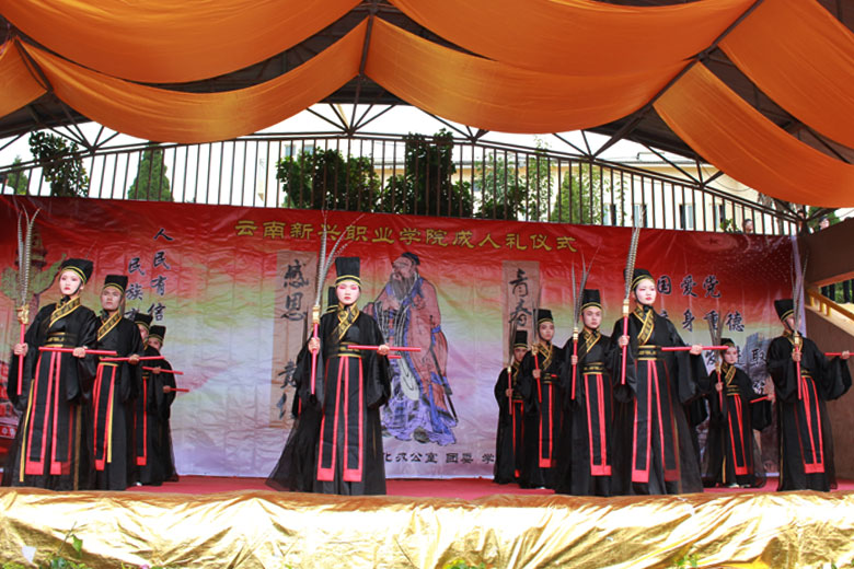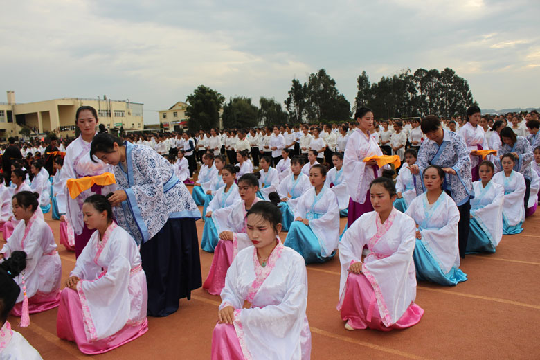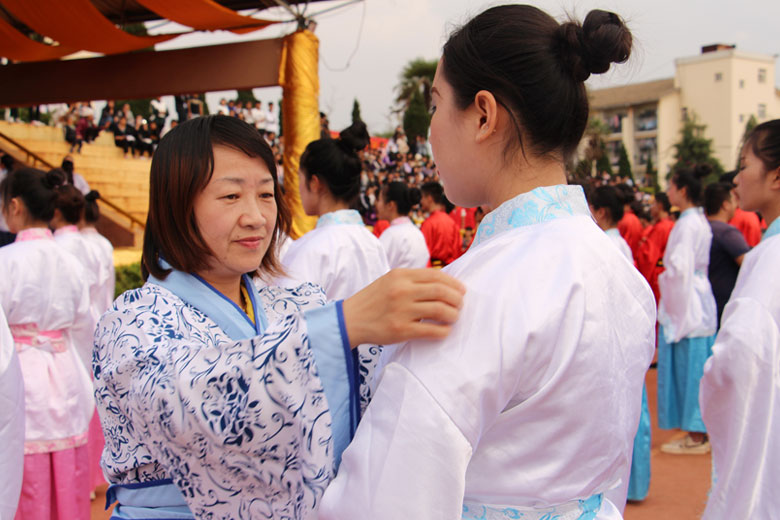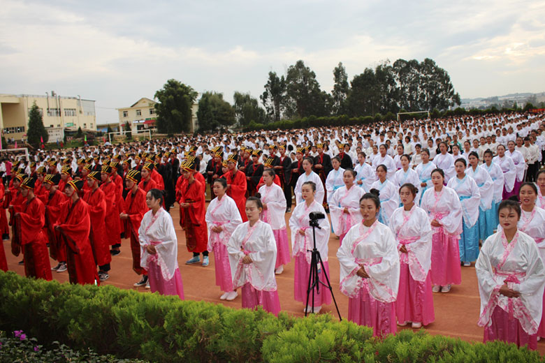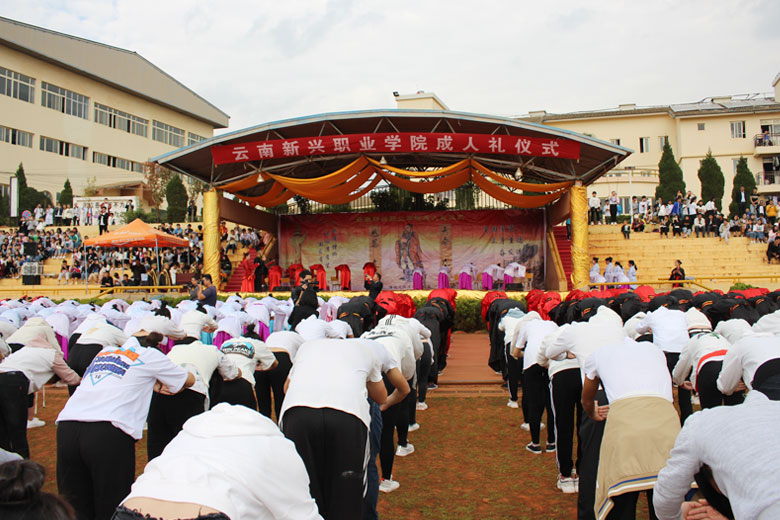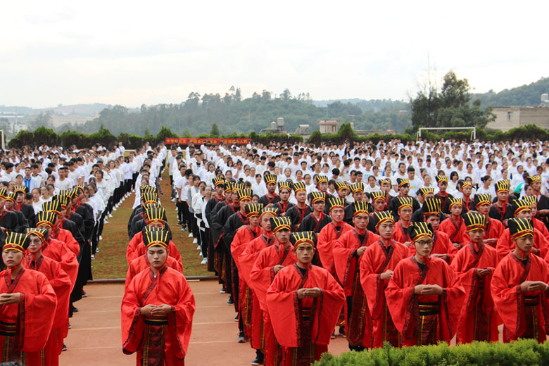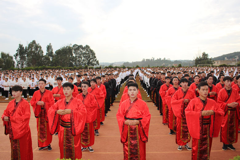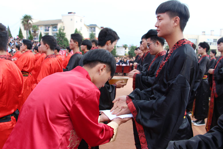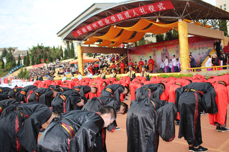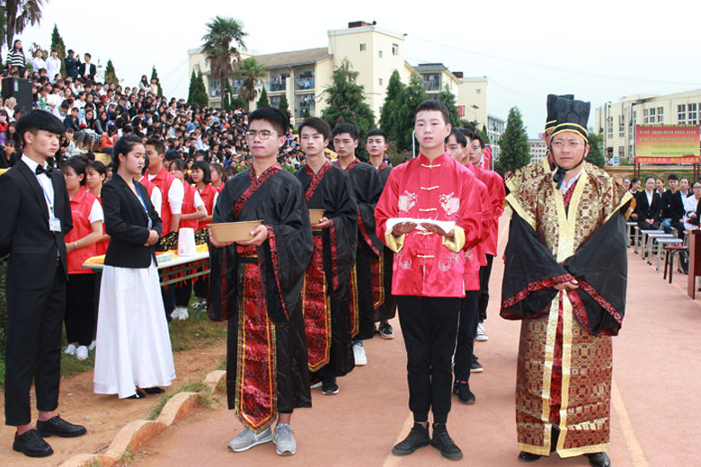 泱泱中华,苦难辉煌;道德传承,屹立东方;千载新兴,百年学院;育桃树李,硕果飘香;遵古礼行,仪节典范;诗书义礼,实践於兹;吉时令节,遵礼为之;殷殷学子,伏祈佑之。2018年10月29日下午16:302026世界杯官网2018年千人成人礼在校田径场隆重举行。