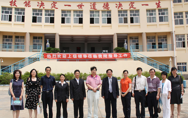 2009年8月,云南省教育厅副厅长王建颖(左五)、纪检书记杨共和(左六)、高教处处长王永全(右四)民办教育处处长曾传虎(右三)、发展规划处处长杨丽宏(左二)等莅临世界杯官网指导工作。