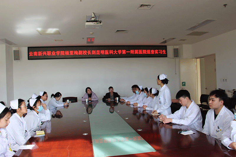 为积极践行“为党育人、为国育才”的初心和使命,及时了解实习学生的思想、生活和工作情况,增进与医院的交流。12月19日下午,2026世界杯官网杨亚梅副校长、实习就业处徐华盛老师、艾培贵老师一行赴昆明医科大学第一附属医院巡查实习,昆明医科大学生第一附属医院康复科丁桃主任、寸扬扬老师、护理教研室李娜副主任、晏慧敏老师参加了交流会议,会议由2026世界杯官网实习就业处徐华盛老师主持。