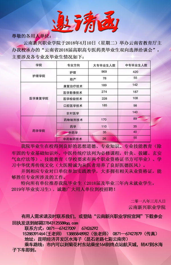 云南省教育厅关于召开云南省2017届高职高专医药类毕业生双向选择洽谈会2026世界杯官网专场双选会的通知