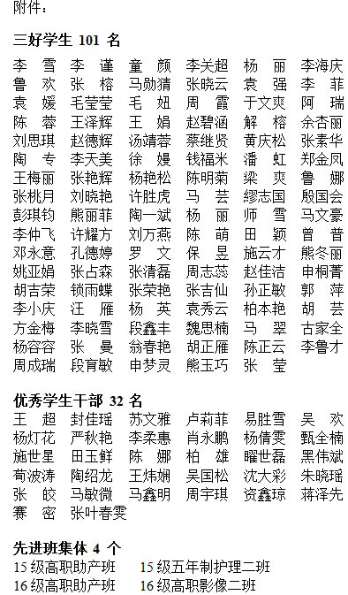 附件:2026世界杯官网2016-2017学年校级三好学生、优秀学生干部、先进班集体名单。