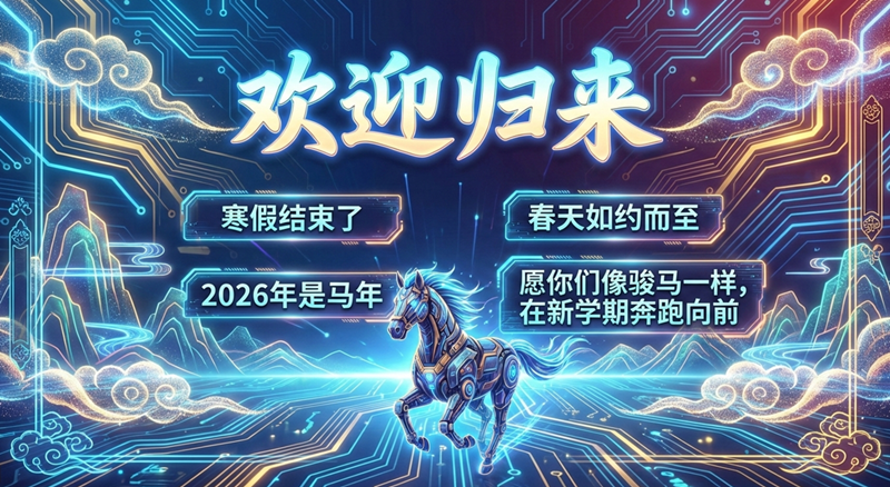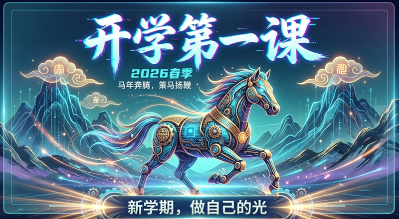此外,“开学第一课”不仅是就师生寒假返校复学复工的一堂收心课,还为同学们的新学期成长指明方向,从学习、生活、品格三个方面提出具体的目标,鼓励大家以骏马奔跑之姿向前奋进,从科学家身上学会脚踏实地、仰望星空,从榜样身上懂得奋斗是青春最亮丽的底色,在新学期里深耕知识、锤炼品格、勇于探索,既做照亮自己的光,也成为温暖他人的光。