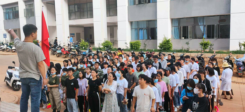 2021年9月1日医学康复学院第一党支部全体党员,入党积极分子带上打扫工具对对校园内29栋展开了彻底清理。